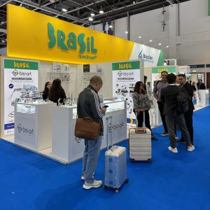 Cada empresa terá à disposição um totem interativo, que proporcionará aos visitantes acesso digital ao catálogo de produtos, informações de contato comercial e WhatsApp, além de uma área de atendimento individualizada e armários para armazenar materiais promocionais.
